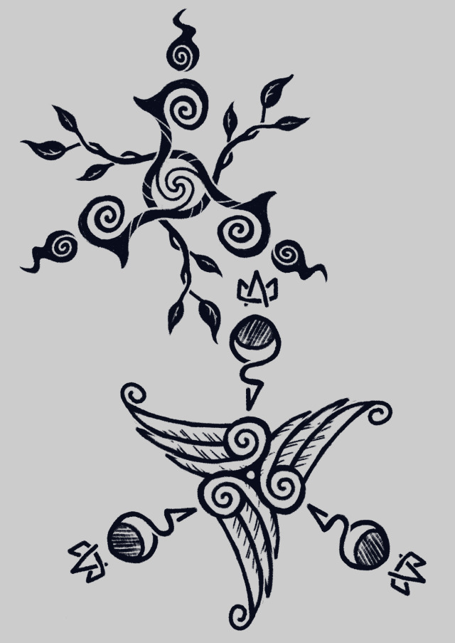 2 разработанных знака, соответствующих Брид и Морриган, двум божествам, которые исследуются сейчас больше всего в качестве предметов поклонения. Верхняя сигила предназначена для Брид, а нижняя - для Морриган. Каждый из символов сделан на основе имени богини с использованием модифицированной версии метода Остина Османа в сочетании с кельтскими художественными мотивами и стилями.