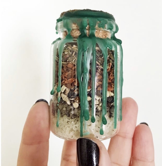 Укладывая ингредиенты в банку,четко концентрируйтесь на намерении сохранить себя и свой дом в безопасности.Как только банка будет собрана,зарядите ее на солнце в течение нескольких часов, запечатайте воском, а затем закопайте рядом с входной дверью,чтобы предотвратить проникновение негатива.